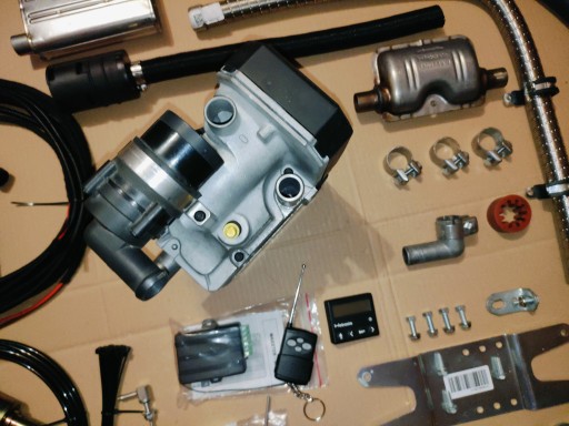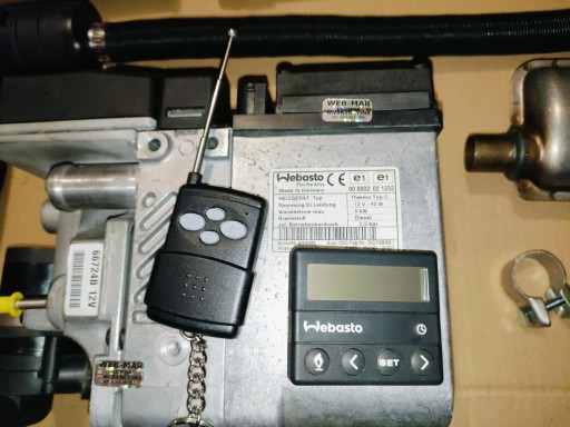 Kompletne ogrzewanie postojowe Webasto Thermo Top C/ZCD, 5/5,2kW (dowolna konfiguracja mocy i zasilania diesel/benzyna), sterowane programatorem zegarowym 1530 i pilotem o zasięgu ok 100m. Jest to ogrzewanie uniwersalne, będzie działało w każdym aucie (domku, łodzi itp.) z instalacją 12V.