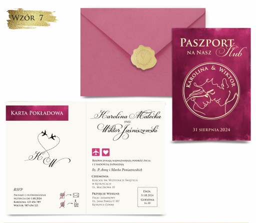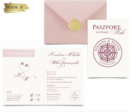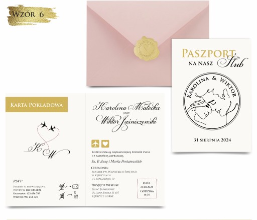 Zaproszenia stylizowane w formie PASZPORTU Ślubnego