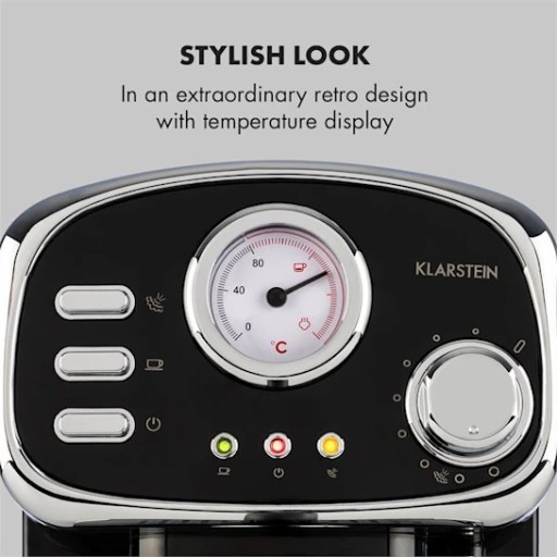 Niezwykły design w stylu retro sprawia, że automat do espresso Espressionata Gusto marki Klarstein przyciąga wzrok w każdej kuchni, niezmiennie zachwycając smakiem świeżo zaparzonej kawy.