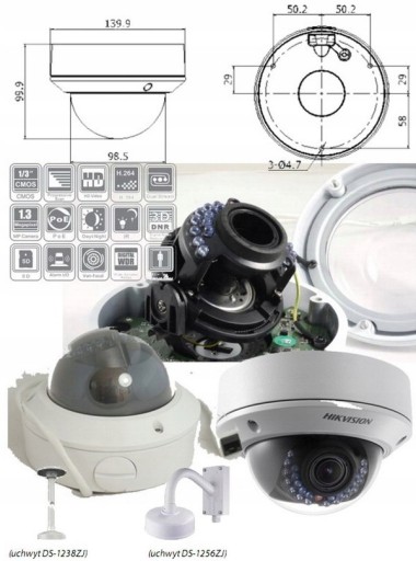 - Zakres regulacji położenia kamery: 360/75/360 ° (pan/tilt/obrót)