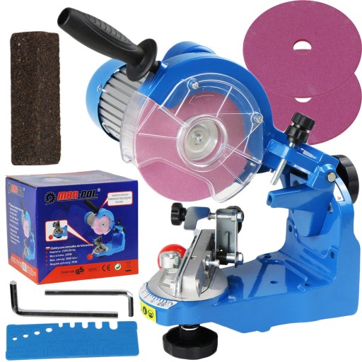 Regulacja kąta ostrzenia łańcucha wraz z podziałką, oraz regulacja bocznego ramienia pozwala na ergonomiczną wygodną pracę, a przede wszystkim zapewnia precyzję podczas ostrzenia łańcucha.