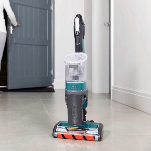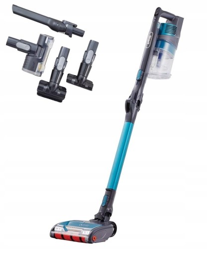 SHARK IZ201EUT Anti Hair to innowacyjny, bezprzewodowy odkurzacz pionowy, który zapewnia perfekcyjne i wygodne sprzątanie. Wyposażony w technologię DuoClean opatentowaną przez producenta SHARK. Są to dwie szczotki rolkowe dzięki którym urządzenie jest w stanie dokładnie sprzątnąć każdą powierzchnię czy to dywan czy twarde podłogi a to wszystko bez konieczności zmiany końcówki. Wałek ze szczotką z włosia głęboko czyści dywany i usuwa uporczywy brud, podczas gdy drugi, miękki wałek dzięki ciągłemu kontaktowi z podłogą zbiera z twardych podłóg uporczywy drobny kurz oraz wciąga duże i małe zabrudzenia. Wygodnie rozmieszczone elementy sterujące pozwalają na łatwe przełączanie między różnymi trybami pracy w zależności od podłogi. Dodatkową wydajność uzyskamy poprzez wciśnięcie przycisku BOOST. Poziom naładowania akumulatora litowo-jonowego wskazują diody umieszczone przy rączce w 5 stoponiowej skali: