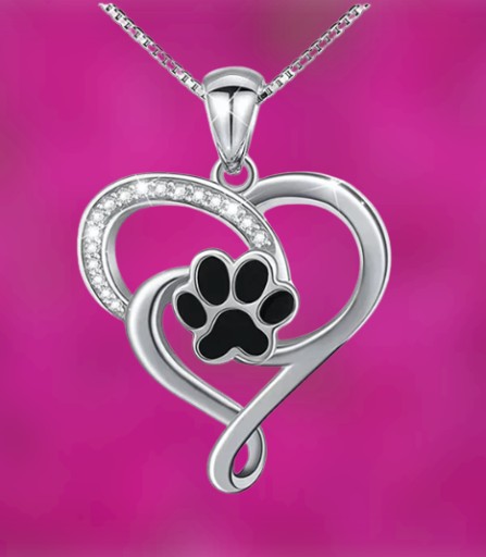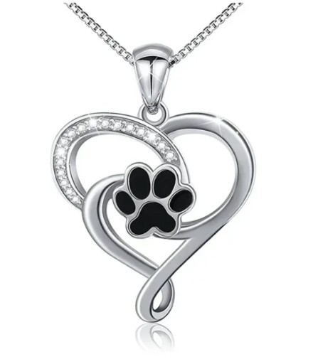 Komlpet Naszyjnik Kolczyki Serce Serduszko Łapka Łapki Psa Pieska Zestaw