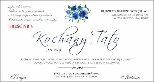 - Na froncie karnetu aplikacja drukowana ze złoceniem i tłoczeniem. Na środku znajduję się wysuwany napis wydrukowany w zależności do kogo jest skierowany "Kochanym Rodzicom, Kochanej Mamie, Kochanemu Tacie, Kochanym Dziadkom, Chrzestnym lub dowolny tekst", całość dopełnia unikatowe tłoczenie!
