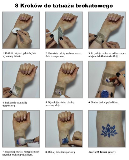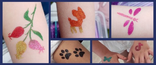 Na naszych aukcjach znajdziesz pozostałe akcesoria to wykonania tatuaży brokatowych, szablony jednorazowe, wielorazowe, brokat kosmetyczny gramatury 0,1 mm
