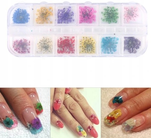 Ilość: 2 pudełko suszonych kwiatów do paznokci