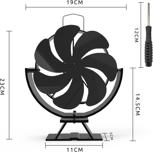 - Wentylator pieca ma siedmio-łopatkową konstrukcję, która skutecznie rozprowadza gorące powietrze po całym pomieszczeniu. Dzięki temu wentylatorowi kominkowemu nie musisz siedzieć przy kominku, aby się ogrzać.
