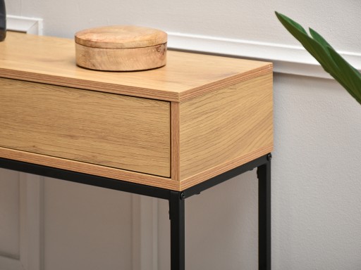 ДУБОВАЯ КОНСОЛЬ 80СМ С ЯЩИКОМ НА ЧЕРНОЙ РАМКЕ НОРА В СТИЛЕ СОВРЕМЕННЫЙ ЛОФТ