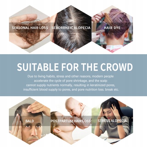 1. Delikatne oczyszczanie: Delikatnie i delikatnie odżywia skórę głowy, pozostawiając uczucie komfortu i odświeżenia, usuwając nagromadzony brud i odblokowując mieszki włosowe, aby zapewnić zdrową skórę głowy.