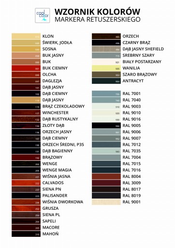 Produkt przeznaczony do retuszu uszkodzeń na powierzchniach pokrytych okleiną PCV oraz z drewna i tworzyw sztucznych.