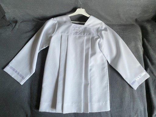 Mam do sprzedania albę komunijną. Używana, ale wygląda jak nowa. Długość całkowita około 66 cm (zdjęcia 2), długość rękawa (od spodu - zdjęcia 3) około 37 cm.
