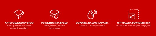 - Gładka, wykonana z wytrzymałego materiału wierzchnia warstwa typu speed zapewnia wysoką precyzję śledzenia ruchów myszy