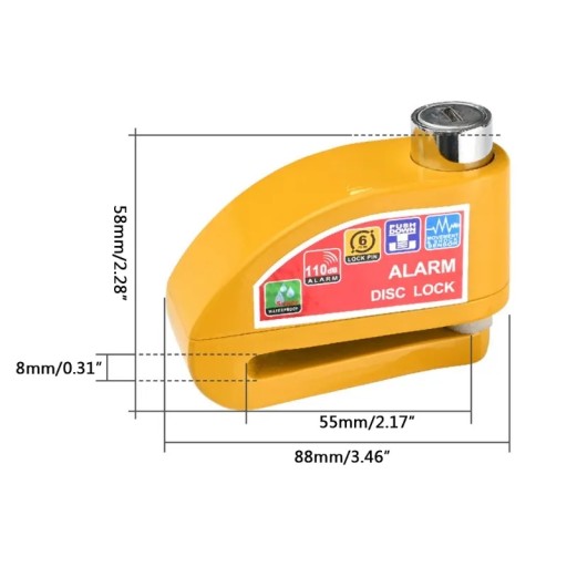· Jest to nie tylko blokada tarczy Twojego pojazdu, ale również alarm o głośności 110 dB
