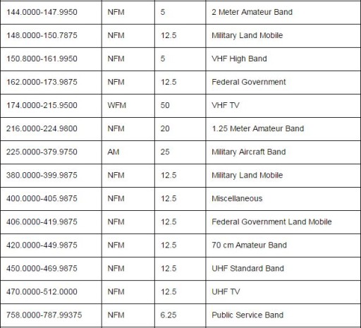 - 136-174Mhz FM Służby ( Policja, Straż Pożarna, Pogotowie Ratunkowe, Wojsko, PKP , Energetyka, Straż Miejska, firmy ochroniarskie, pasmo amatorskie 2m)