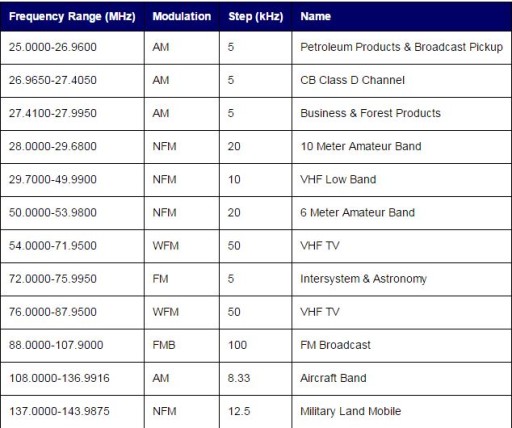Jako jeden z nielicznych, skaner umożliwia odsłuch pasma CB w modulacji AM oraz pasma lotnictwa wojskowego 225-400 Mhz