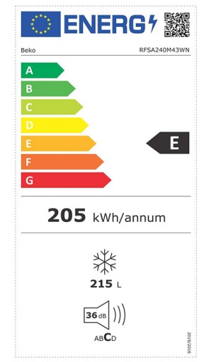 Zamrażarka szufladowa BEKO RFSA240M43WN o szerokości 59,5 cm i wysokości 150,8 cm posiada klasę energetyczną E. Duża pojemność zamrażarki - 215 litrów, stanowi idealną, dodatkową przestrzeń do przechowywania produktów dla każdej rodziny. Roczne zużycie energii to około 205 kWh, a poziom hałasu - 36 dB.