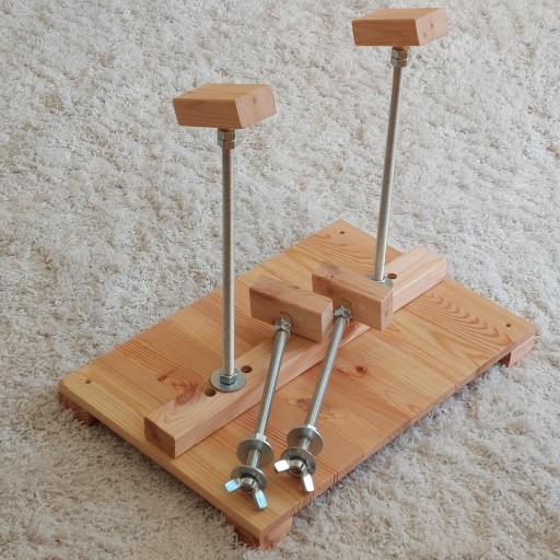 Nakrętki motylkowe od spodu stojaka do gimnastyki pozwalają na szybką i łatwą zmianę rozstawu uchwytów i dostosowanie urządzenia od potrzeb i budowy ciała osoby ćwiczącej. Zmiana rozstawu uchwytów nie wymaga żadnych narzędzi. Nakrętki mogą być dokręcone z odpowiednią siłą gołymi rękami. Dokręcona nakrętka usztywnia uchwyty i uniemożliwia ich obrót.