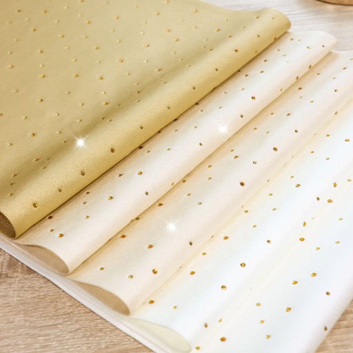 SZAFIR to wyjątkowa kolekcja atłasowych bieżników wykończonych estetycznym podłożeniem na 1 cm, na całej powierzchni ozdobione są nowoczesnym wzorem wykonanym ze szklanych kryształków, mieniących się kolorami tęczy. Bieżniki dostępne są w wielu kolorach oraz rozmiarach (dostępne na pozostałych aukcjach), dlatego dopasowanie nie będzie stanowiło problemu. Z kolekcji SZAFIR proponujemy również inne produkty, jak poszewki, czy podkładki dostępne na naszych aukcjach.