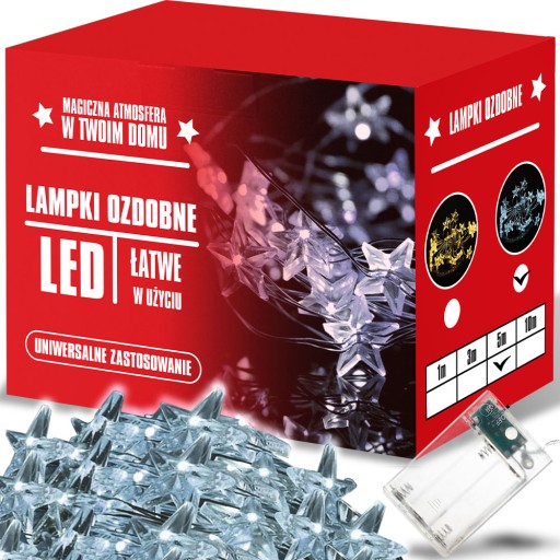 ✅OZDOBNE ŚWIATEŁKA LED BIAŁE ZIMNE - GWIAZDKI 5 m✅