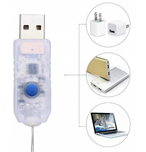 Kurtyna LED zasilana jest poprzez USB, przez co do rozświetlenia nie potrzeba bezpośredniego dostępu do prądu.