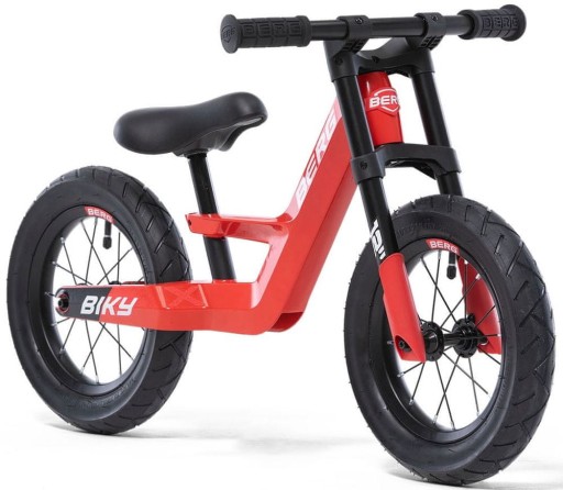 BERG Biky to rowerek biegowy dla dzieci w wieku od 2 do 5 lat. Dzięki Efektownemu designowi rower BERG Biky przyciąga wzrok. Kierownica wykonana jest z lekkiego magnezu. Posiada ogranicznik kąta skrętu, regulowane siodełko i wygodne pompowane opony. Dzięki zastosowaniu najnowszych technik produkcji i lekkiego magnezu, firmie BERG udało się opracować wyjątkowo stabilną ramę o bardzo niskiej wadze. Dzięki temu kierownica jest bardzo łatwa w manewrowaniu. Dzięki niskiemu stopniowi i regulowanej wysokości siodełka, Biky jest bardzo przystępny i odpowiedni dla dzieci o wzroście od 85 cm do 120 cm. Zacisk siodełka jest zintegrowany z ramą i jest łatwy w obsłudze za pomocą dołączonego klucza imbusowego. W ten sposób można łatwo i bezstopniowo ustawić odpowiednią wysokość. Rowerek biegowy jest najlepszym przygotowaniem do samodzielnej jazdy na rowerze. Balansowanie na dwóch kółkach i jednoczesna nauka kierowania pojazdem to duże wyzwanie dla małych dzieci. Aby zapobiec niespodziewanemu "przewróceniu się" BERG posiada ogranicznik kąta skrętu, który można ustawić w pozycji dla początkujących i zaawansowanych rowerzystów.