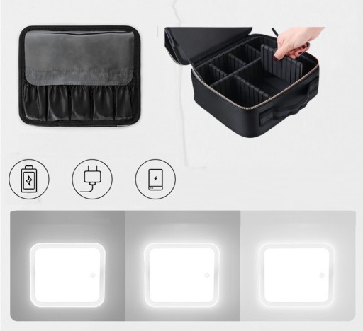 Wznieś swój makijaż na wyższy poziom dzięki naszej wyjątkowej kosmetyczce z podświetleniem LED. Koniec z szukaniem dobrze oświetlonego miejsca lub poleganiem na słabym oświetleniu pokoju hotelowego - dzięki naszej kosmetyczce zawsze będziesz mieć idealne oświetlenie do bezbłędnej aplikacji makijażu.