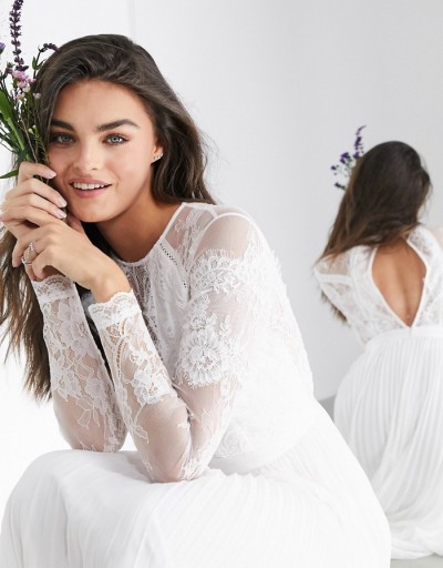 Biała plisowana suknia koronka (42)