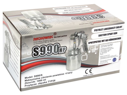 Pistolet lakierniczy S-990 z dolnym zbiornikiem to model pistoletu wysokociśnieniowy HP. Połączenie kompaktowych rozmiarów z siłą i skutecznością systemu HP zapewnia efektywny transfer materiału. System HP to mniejszy pobór powietrza przy wyższym ciśnieniu roboczym.
