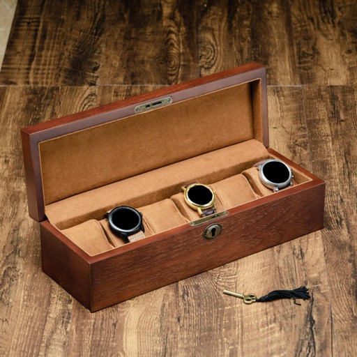 Luksusowy 6-slotowy Drewniany Organizer Pudełek Na Zegarki Ze Zdejmowaną Poduszką Do Zegarka Zamykany Prostokąt