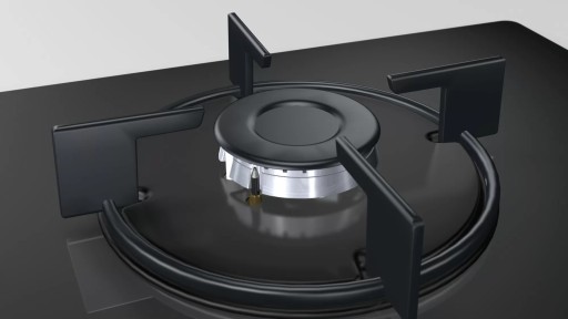 Płyta gazowa wykonana ze szkła hartowanego, o szerokości 60 cm, z 4 palnikami o mocy całkowitej 7400 W, z 4 niezależnymi rusztami emaliowanymi, zapalarką gazu w pokrętle oraz z zabezpieczeniem przeciwwypływowym.