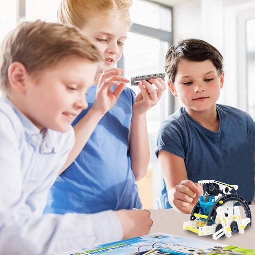 Możesz zbudować jednego z wielu robotów poruszających się po lądzie i wodzie. Nie musisz ograniczać się do jednego modelu, zestaw można w każdej chwili zdemontować i zmontować, co czyni go źródłem niekończącej się zabawy. Robot zasilany jest ogniwem słonecznym, więc jest odpowiednim prezentem, nawet jeśli troszczysz się o środowisko.