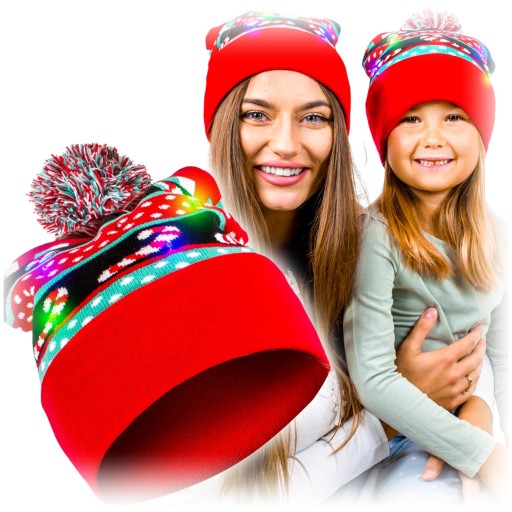 ✨ CZAPKA ŚWIĄTECZNA LED ŚWIECĄCA Z POMPONEM ZIMOWA CZERWONA