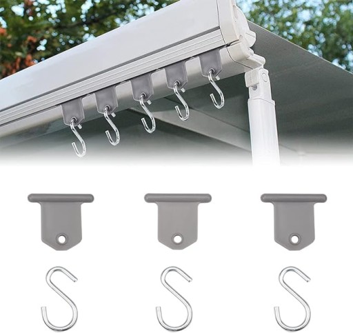 - Łatwy w użyciu: wystarczy wsunąć uchwyt haka w szynę prowadzącą markizy, aby utworzyć punkt zawieszenia wzdłuż szyny prowadzącej. Łatwy w montażu i demontażu, nie zajmuje dużo czasu.