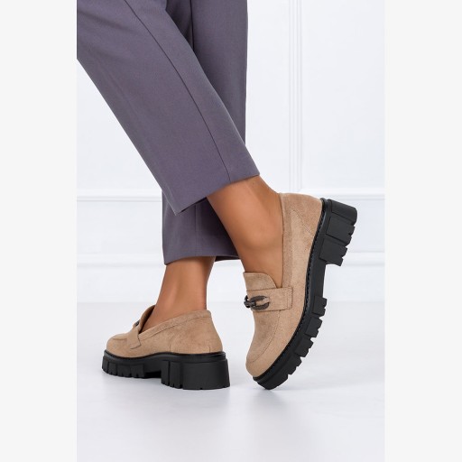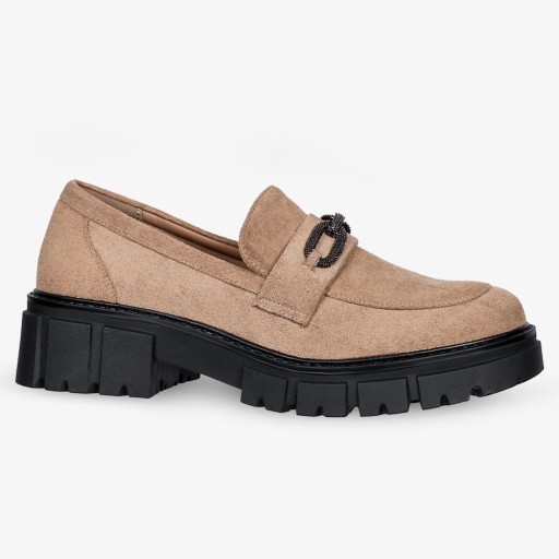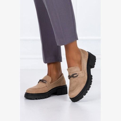 Beżowe mokasyny damskie model G23X6-DB zostały wykonane z wysokogatunkowej, zamszowej skóry ekologicznej co gwarantuje doskonałą jakość, wygodę i dopasowanie do stopy. To eleganckie i stylowe obuwie, które można nosić na wiele różnych okazji. Bieżnikowa podeszwa zapewnia dobrą przyczepność na różnych powierzchniach. Można je nosić zarówno do formalnych, jak i nieformalnych strojów. Świetnie pasują do spodni, zarówno klasycznych, jak i jeansów, a także do sukienek i spódnic. Są znakomitym dodatkiem do garderoby, ponieważ beżowy kolor jest uniwersalny i łatwo go zestawić z innymi elementami stroju. Ozdobna sprzączka dodaje im oryginalności i elegancji. Na Casu znajdziesz wiele wzorów, które z pownością dopasujesz do swoich stylizacji.