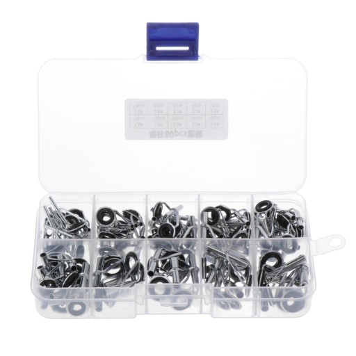 10 różnych rozmiarów prowadnicy ceramicznej końcówki: 10 szt 1,5 #, 10 szt 1,8 #, 10 szt 2,0 #, 10 szt 2,2 #, 10 szt 2,4 #, 10 szt 2,6 #, 5 szt 2,8 #, 5 szt 30 #, 5 szt 3,2 #, 5 szt 3,5 #, łącznie 80 szt Trwała wymiana prowadnic wędki: Zestaw naprawczy prowadnic wędki z końcówkami wędkarskimi z ramą ze nierdzewnej i odpornym na zużycie ceramicznym pierścieniem jest mocny i trwały Prowadnice wędki: prowadnice wędki umieszczone wzdłuż dolnej części wędki, aby pomóc kontrolować żyłkę Przewodniki wędkarskie Wskazówki dotyczące instalacji oczu: Oczy zmniejszają się od uchwytu do końcówki, czym ta najbliżej uchwytu zwykle jest znacznie większa niż reszta, aby umożliwić mniejsze tarcie, gdy zwinięta schodzi z kołowrotka Zastosowanie: Te różne przelotki oczkowe mogą być używane do spinningowania wędki używanej w wędkarstwie sportowym, zapakowane w przezroczyste plastikowe pudełko, łatwe do przechowywania i oddzielnego rozmiaru