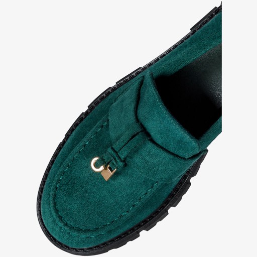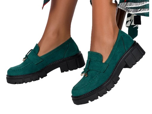 Zielone mokasyny damskie model G23X7-DG zostały wykonane z wysokogatunkowej, zamszowej skóry ekologicznej co gwarantuje doskonałą jakość, wygodę i dopasowanie do stopy. To eleganckie i stylowe obuwie, które można nosić na wiele różnych okazji. Mają płaską, bieżnikową podeszwę, która zapewnia dobrą przyczepność, komfort i stabilność podczas chodzenia. Ich główną cechą wyróżniającą jest subtelna i efektowna ozdoba umieszczona na przedniej części cholewki, która dodaje butom wyjątkowego uroku i elegancji. Można je nosić zarówno do formalnych, jak i nieformalnych strojów. Świetnie pasują do spodni, zarówno klasycznych, jak i jeansów, a także do sukienek i spódnic. Kolor zielony jest barwą świeżości i natury dlatego noszenie takich butów może dodać odrobinę przyjemnej energii i radości do każdej stylizacji. Jeśli szukasz butów, które będą zarówno stylowe, jak i wygodne, sprawdź ofertę Casu