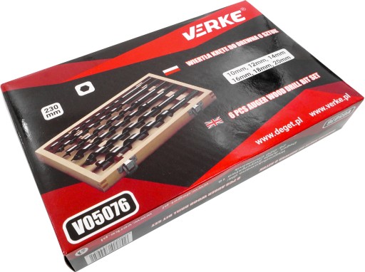 Zestaw wierteł krętych spiralnych do drewna l-230 mm, 6 szt. Verke