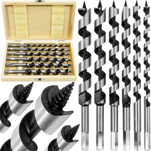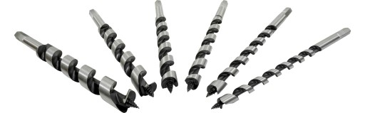 Komplet 6 wierteł do drewna o długości 230 mm charakteryzujących się dokładnym nawiercaniem, precyzyjnym wierceniem, wysoką stabilnością, szybkim odprowadzaniem wiórów z powodu zastosowania spirali typu Lewis, a także - dzięki hartowanemu ostrzu głównemu i pomocniczemu - również długą żywotnością.