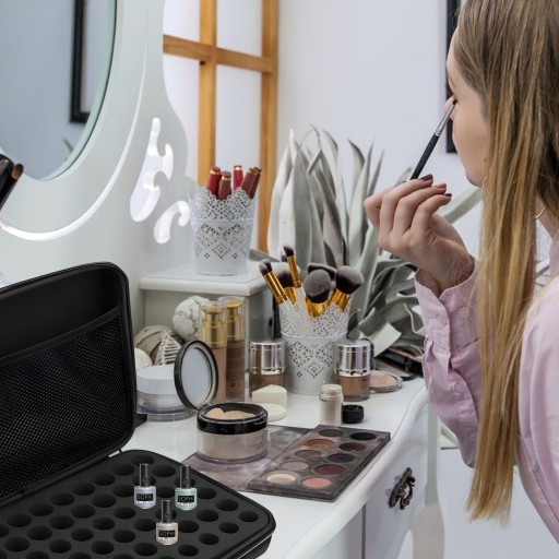 ✨ Praktyczne przechowywanie: Pomaga w utrzymaniu porządku w kosmetykach, szczególnie jeśli chodzi o olejki eteryczne oraz lakiery do paznokci.