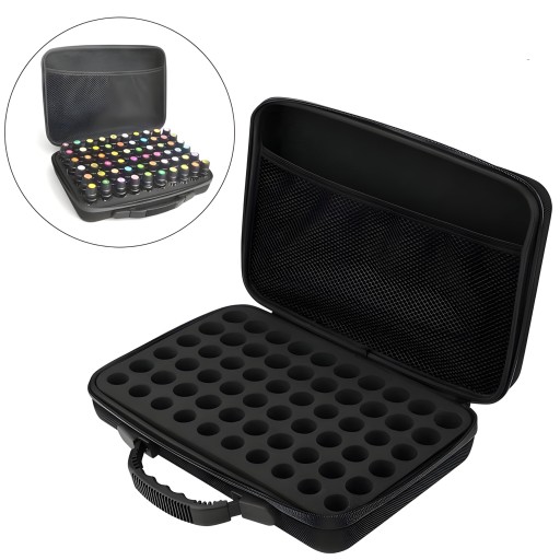 Separator z pianki z 60 otworami na buteleczki z olejkami lub lakierem stanowi ddatkową ochronę podczas podróży, zmniejszając ryzyko potencjalnego rozlania czy uszkodzenia butelek z olejkami eterycznymi. Po wyjęciu wkładu z gąbki, etui może również pełnić funkcję kosmetyczki do innych akcesoriów. To nie tylko praktyczne, ale także stylowe rozwiązanie. Warto zaznaczyć, że to etui jest skonstruowane tak, aby najlepiej chronić olejki eteryczne przed różnymi zagrożeniami, takimi jak zadrapania, uderzenia czy ewentualne wycieki.