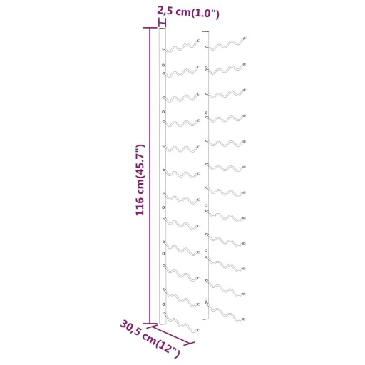 Настенные ручки для 36 бутылок вина 2 ПК Золотого железа