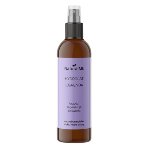 Hydrolat z lawendy NaturalME to naturalna woda lawendowa, któraotrzymywana jest w procesie destylacji wysokiej jakości kwiatów lawendy. Odświeża skórę. Posiada właściwości bakteriostatyczne. Działa lekko ściągająco, reguluje wydzielanie sebum. Polecana do skóry wrażliwej i podrażnionej. Pomaga w regeneracji naskórka, łagodzeniu obrzęków, leczeniu łupieżu.