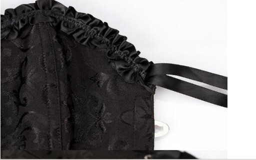 Wiązany gorset typu OVERBUST wykonany z gęstej wytrzymałej tkaniny o dyskretnym, kwiecistym wzorze. Konstrukcja wykonana z 12 mocnych fiszbin gorsetowych