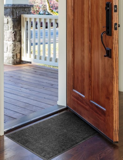 - Wycieraczka skutecznie zatrzymuje zanieczyszczenia z obuwia.