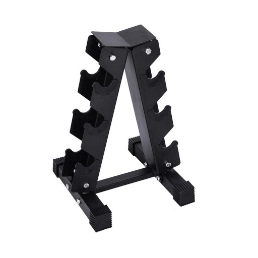 Stojak na hantle umożliwia wygodne przechowywanie hantli. Może pomieścić łącznie do 3 pary hantli. Wytrzymuje obciążenie do 120 kg. Szczególnie stabilny i nie przechylany dzięki solidnej konstrukcji. Na dolnej części uchwytu znajduje się mata ochronna, która wspomaga przyczepność, jednocześnie chroniąc podłogę. Doskonały wybór do siłowni, ale też do domu, nie zajmuje bowiem za dużo miejsca.