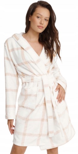Przyjemny w dotyku, pluszowy szlafrok damski HENDERSON w eleganckim, kremowym kolorze.