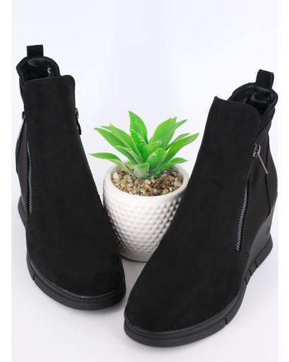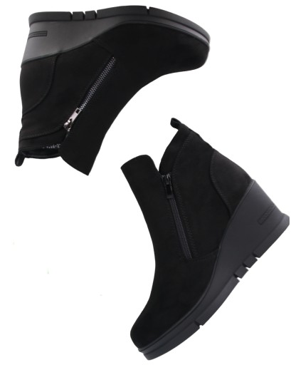 ZAMSZOWE BOTKI NA KOTURNIE CZARNE BUTY OCIEPLANE