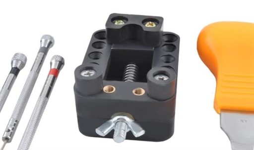 - SPECYFIKACJA – wymiary (dł/szer/gł): 20/10/5 cm, waga: 510 g, w zestawie: klucz nastawny/otwieracz obrotowy regulowany do spodów na śruby, zestaw 18 końcówek do otwieracza/klucza obrotowego, regulowany imak (trzymadełko) do mocowania zegarków, 3x wybijak do bransolet 0,70 mm/0,80 mm/1,00 mm, pęseta precyzyjna z szpiczastym czubkiem, zestaw 3x wkrętak płaski z wymiennym grotem, przyrząd do ściągania teleskopów, przyrząd do skracania bransolet, nożyk do podważania dekla w zegarkach, etui.