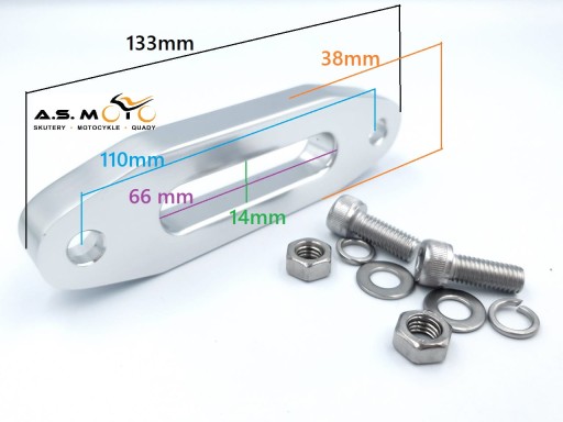 Prowadnica aluminiowa liny syntetycznej do wyciągarek. W zestawie śruby, nakrętki oraz podkładki do zamocowania w pojeździe.