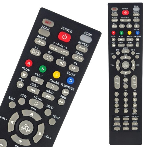 Oferowany tutaj pilot jest odpowiednikiem pilotów do dekoderów cyfrowych. Oprócz standardowych przycisków nawigacyjnych, zmiany kanałów i regulacji głosu, posiada wszystkie funkcje wykorzystywane w telewizji cyfrowej. Do takich klawiszy należą np. INFO (informacja o kanale), EPG (program telewizyjny), SUBTITLES (Włączenie/wyłączenie napisów), AUDIO (zmiana ścieżki dźwiękowej). Producent zapewnił także szereg klawiszy wykorzystywanych przy przeglądaniu multimediów z pamięci przenośnych typu . Dzięki klawiszowi USB można szybko zmienić źródło obrazu na prywatny folder naszej pamięci, a podczas odtwarzania nagrań wideo możemy przewijać, pauzować, przełączać się pomiędzy plikami. Wszystko oczywiście będzie dostępne, jeśli Wasz dekoder posiada takie funkcje.